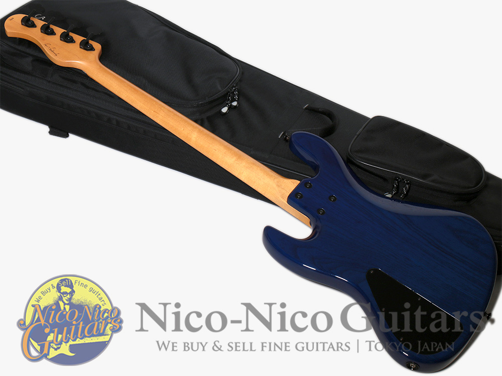 正規代理店での新規受注が停止中となっている希少なNYC製で、ボディトップには深みのあるトランスブルーに仕上げられた大柄で美しい杢目のキルトメイプル材、バックにはチェンバード加工の施された軽量なアッシュ材が使用されております。