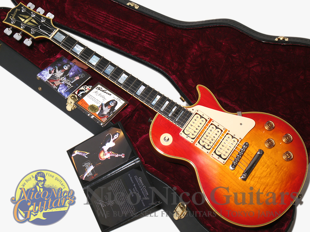 1977年の来日公演でエース・フレイリーが使用していたレスポール カスタムを復刻しており、3ピースメイプルトップ、明るい色合いのチェリーサンバースト、スクエア・パーロイド・ボタンのグローバー、ペグ交換に伴ったネジ穴跡、ストラップピンの交換跡、スピードノブなどが再現されています。