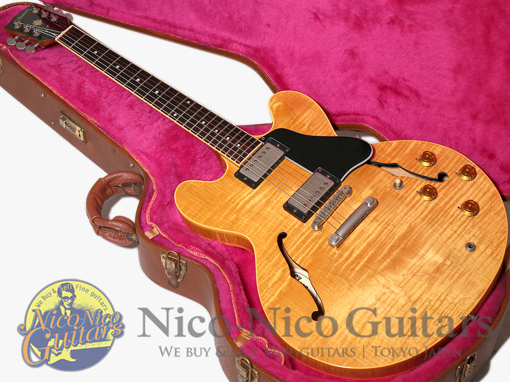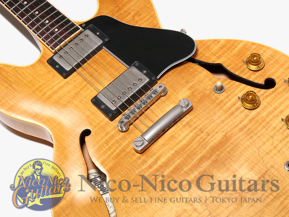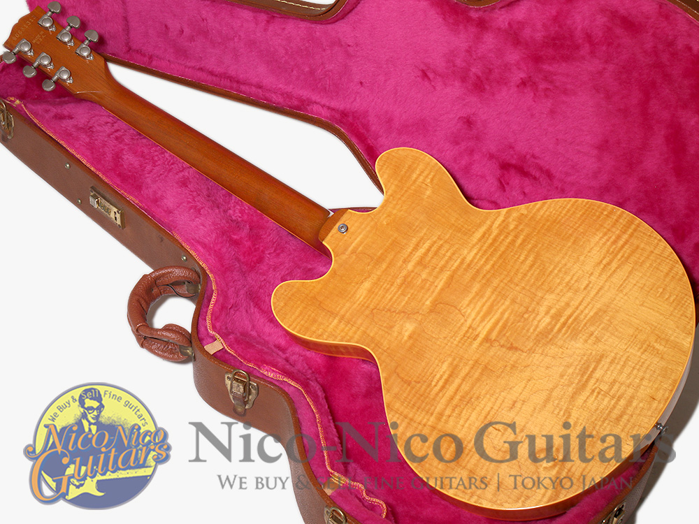 美しい杢目のフィギュアドメイプルを贅沢に使用したアンティーク・ナチュラルフィニッシュの”ES-335 Dot Reissue"モデル。