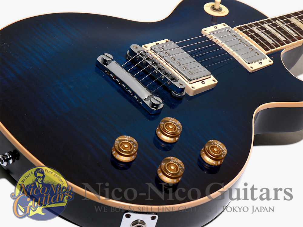 深い色味のミッドナイト・マンハッタン・フィニッシュ、幅広で均一な杢目のフレイムメイプルトップが美しい一本です。